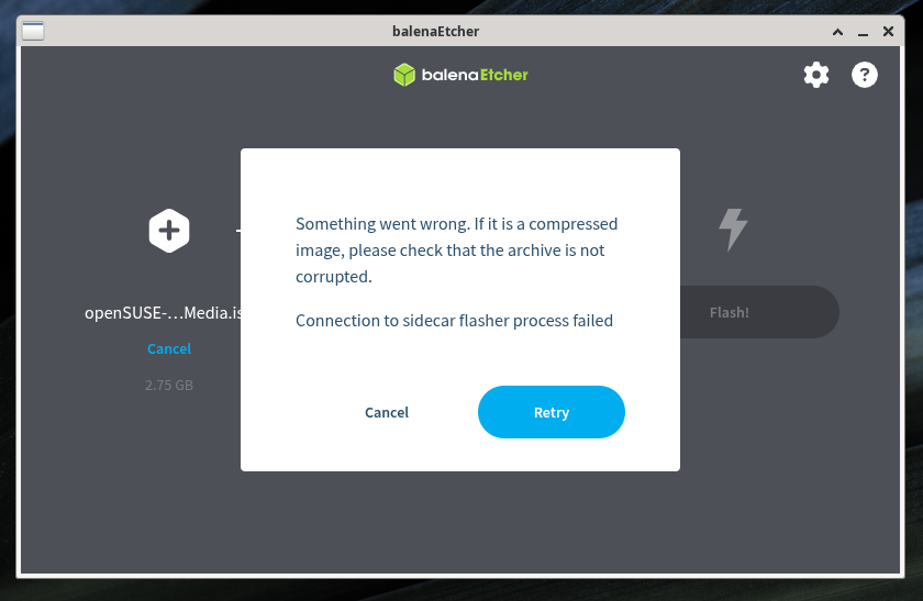 Problem dotyczy instalacji iso na pendrive za pomocą Balena-Etcher.